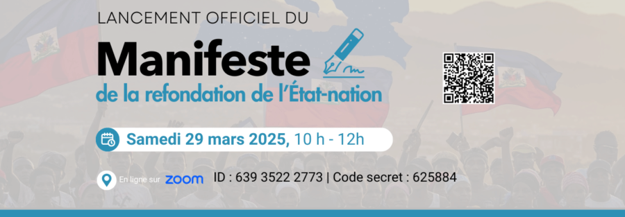 C’est dans ce contexte que le Mouvement haïtien de Sauvetage National (MOHSANA) vous invite à participer au lancement officiel du Manifeste de la Refondation de l’État-nation (MARENA). Ce manifeste propose une vision audacieuse, structurée et inclusive pour rebâtir Haïti sur des bases de souveraineté, de justice, de prospérité partagée et de solidarité citoyenne.